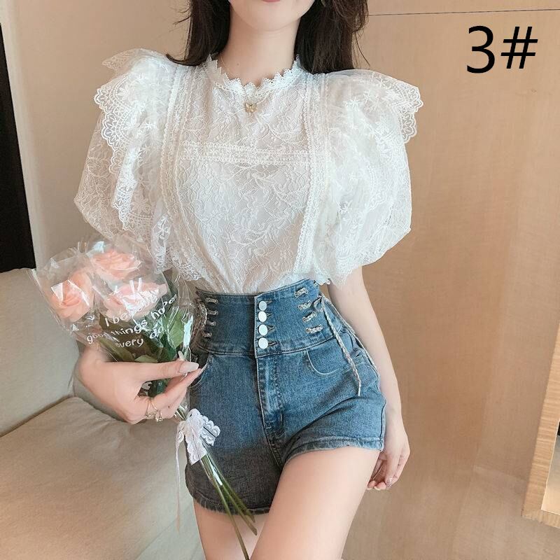 ◎【送料無料】2022春夏新作 レース ブラウス Tシャツ パフスリーブ 半袖 レディーストップス おしゃれ