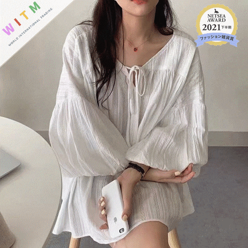 ◎【送料無料】2022春夏新作 パフスリーブ ブラウス リボン付き レディース 着痩せ 体型カバー 透け感