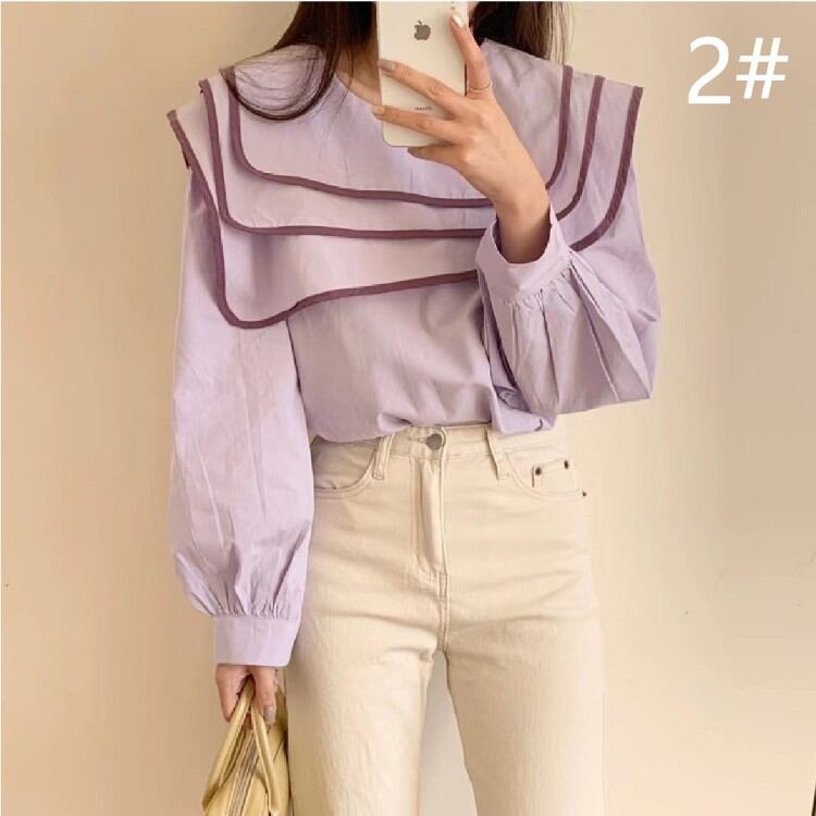◎【送料無料】2022春夏新作 不規則襟 人気ブラウス トップス 長袖 レディース 体型カバー 着回し おしゃれ