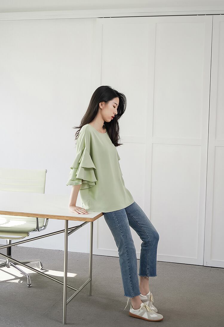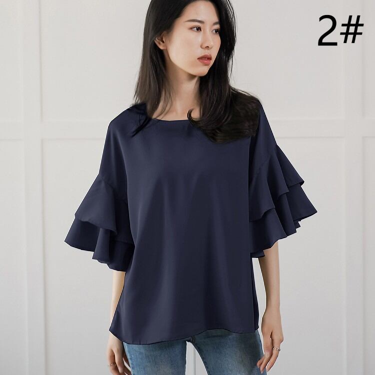 ◎【送料無料】2022春夏新作 人気ブラウス トップス フレア袖 レディース 体型カバー 着回し おしゃれ