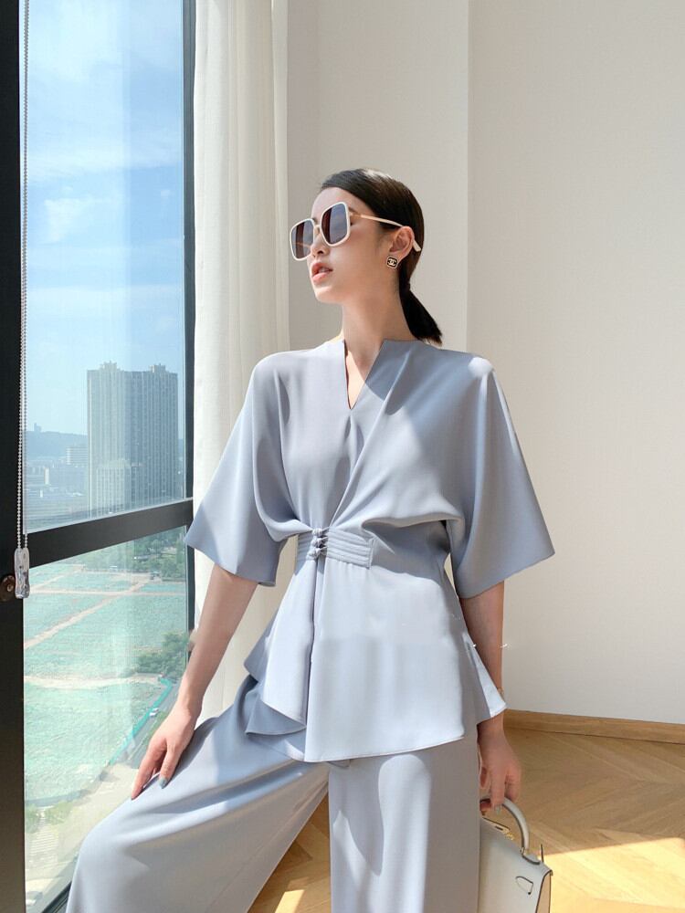 ◎【送料無料】セット Vネック レディース 大人気 2点セット カジュアル 気質 ワイドパンツ