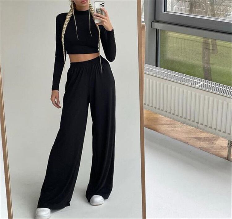 ◎【送料無料】2022 ファッション 気質 ワイドパンツ 長袖 セット カジュアル スポーツスーツ