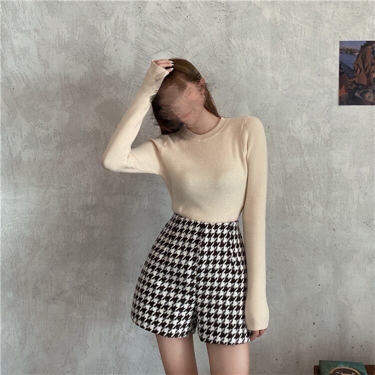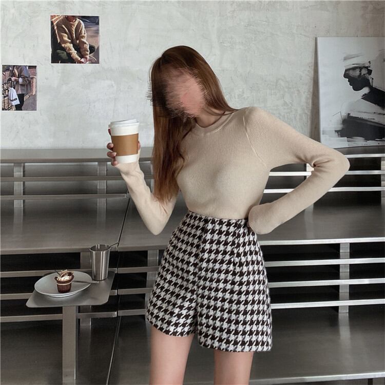◎【送料無料】大人女子の普段着コーデに使え ラウンドネック ベースシャツ ニット ハイウエスト ひし形 ショートパンツ