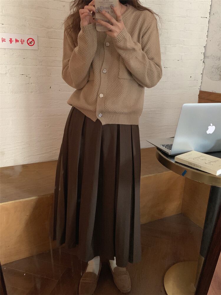 ◎【送料無料】楽ちんなのにドキッとさせる レトロ ニット カーディガン セーター ハイウエスト スカート 2点セット