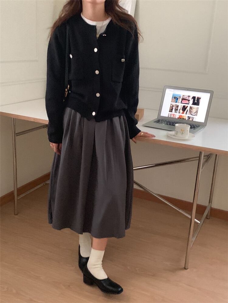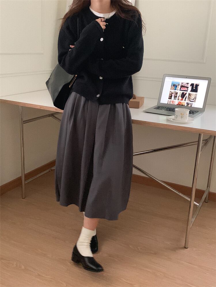 カラー:ブラック(セーター),カーキ(セーター),グレー(スカート),コーヒーの色(スカート)
