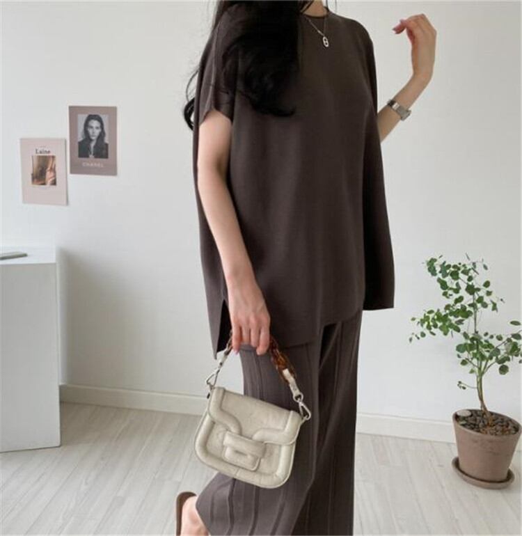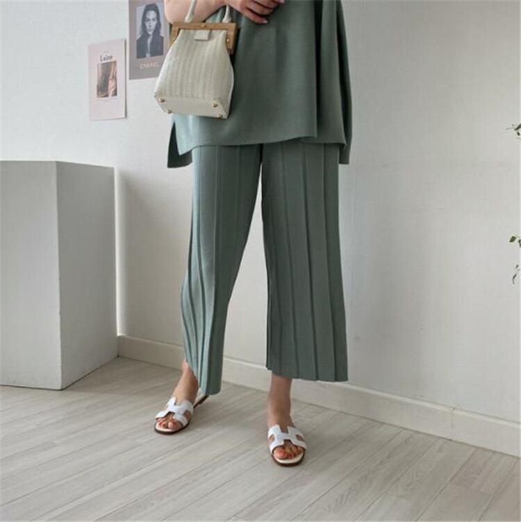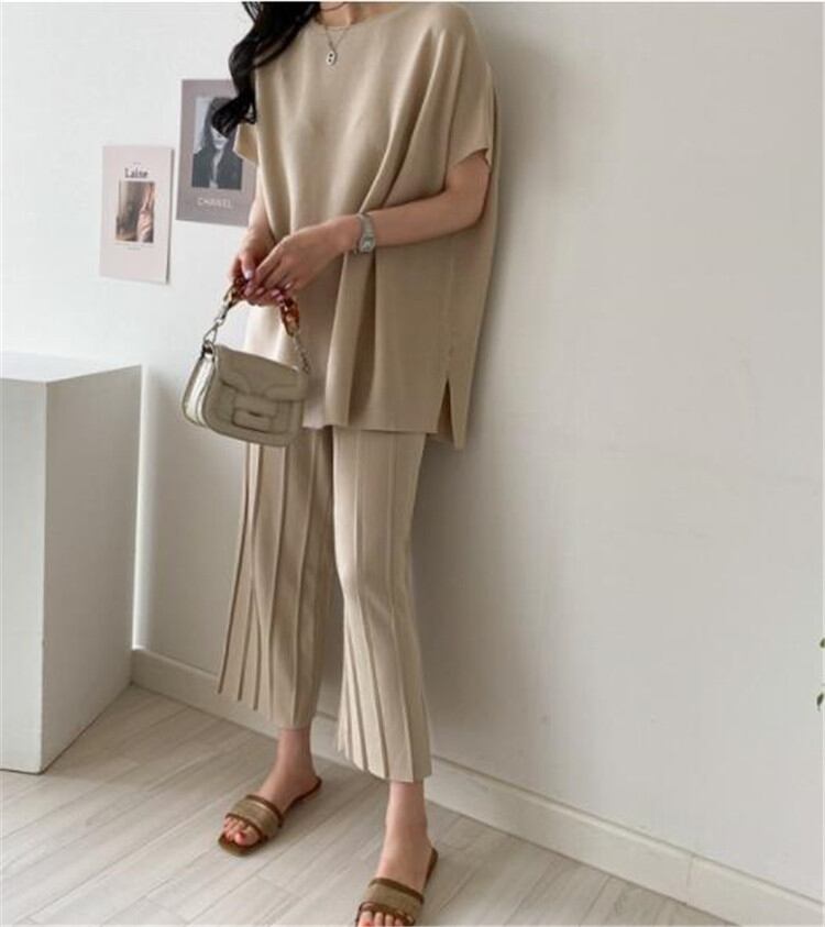スリムフィット 2点セット バットシャツ ゆったりする 韓国 プリーツ 薄い アイスシルク ニット