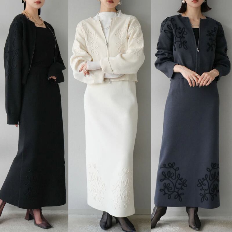 ◎【送料無料】ニットトップス スカート セットアップ 上下セット レディース ロング丈スカート ボトムス カーディガン