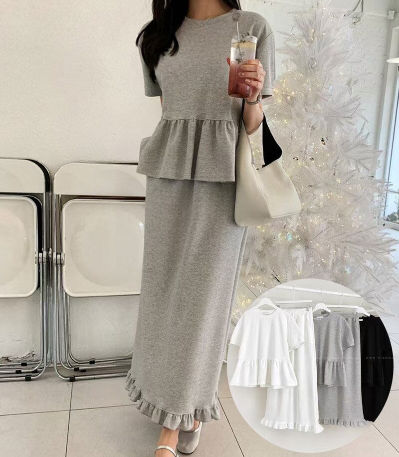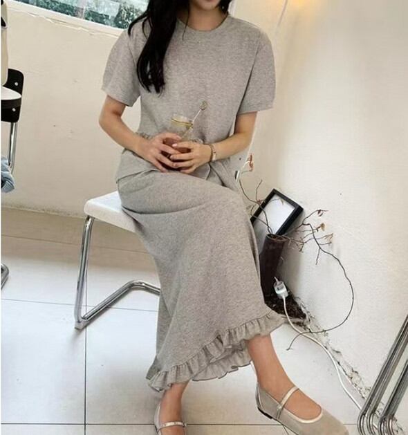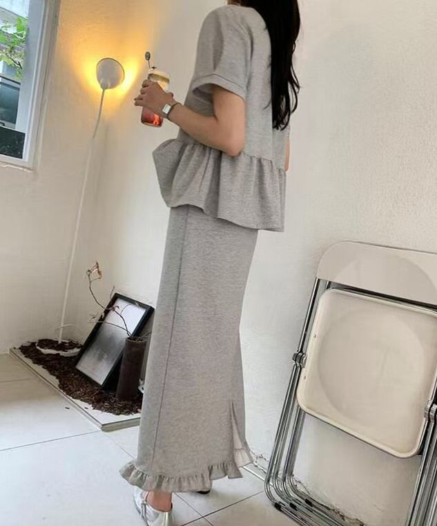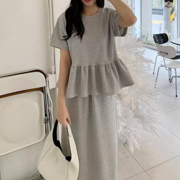 ◎【送料無料】スカート セットアップ レディース 上下セット トップス 半袖 ロングスカート 大人可愛い