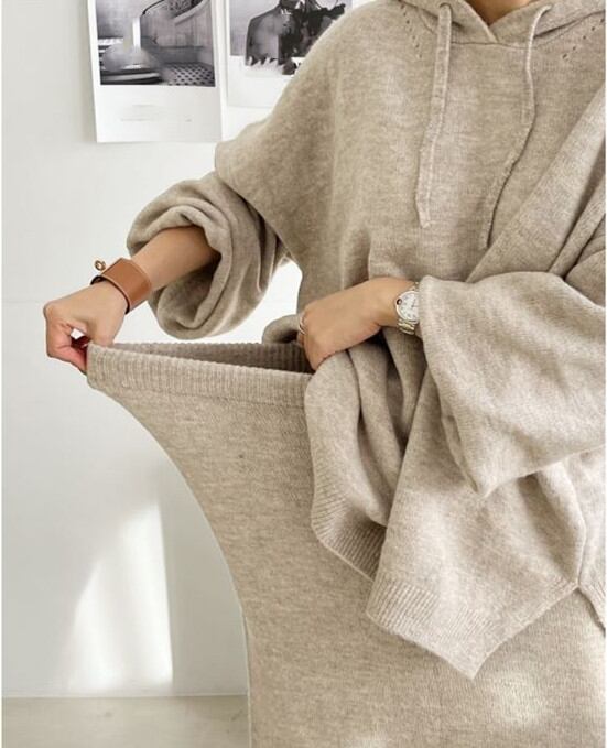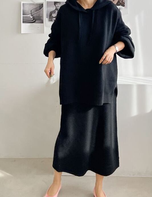 リラックス感があり着心地も抜群なゆったりニットトップスとニットスカートがバランスの良いセットアップ。