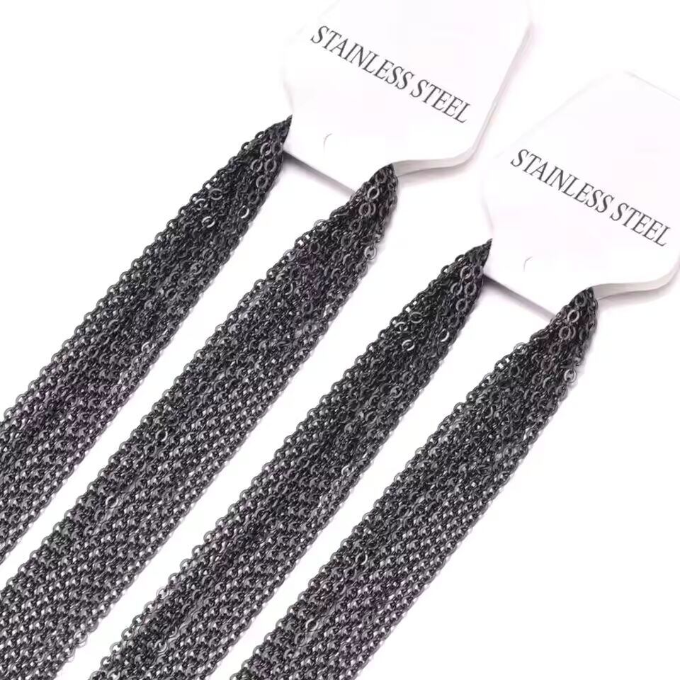 【送料無料◎】 LUXUSTEEL 10 ピース/ロットステンレス鋼チェーン 2 ミリメートル/1 ミリメートル O 形状ロロリンクキューバロングネックレス女性のペンダント DIY ジュエリー卸売