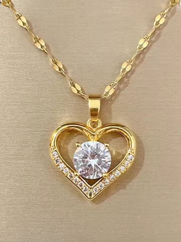 【送料無料◎】 女性用ペンダントネックレス,人工宝石,ハート型,ゴールドカラー,ステンレススチール,女の子用,2022