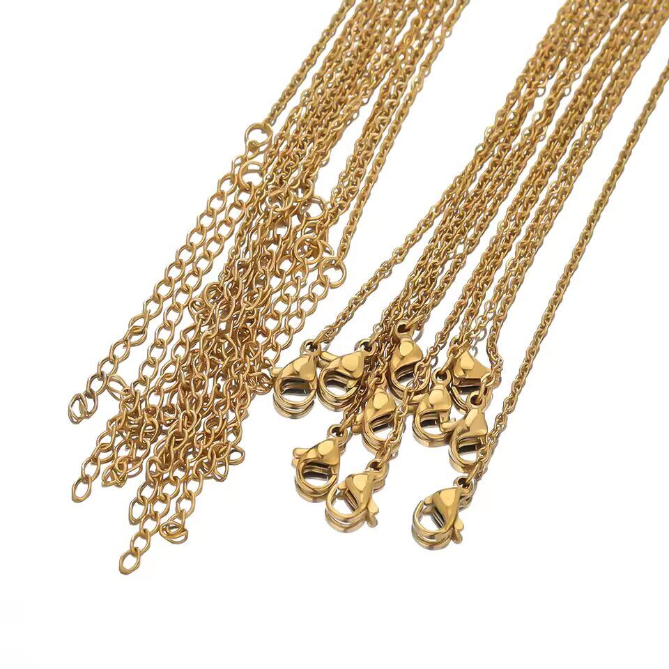 【送料無料◎】 10 個 45 + 5 センチメートルゴールドカラーステンレス鋼リンクチェーンバルクネックレスファッションジュエリー調節可能なチェーン卸売チョーカー DIY