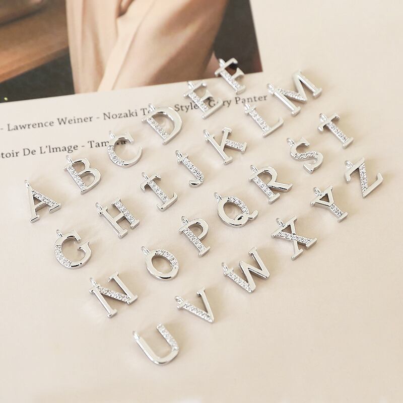 ◎【送料無料】縦カン付き アルファベット パーツ イニシャル チャーム ストーン アクセサリーパーツ ハンドメイド 英語