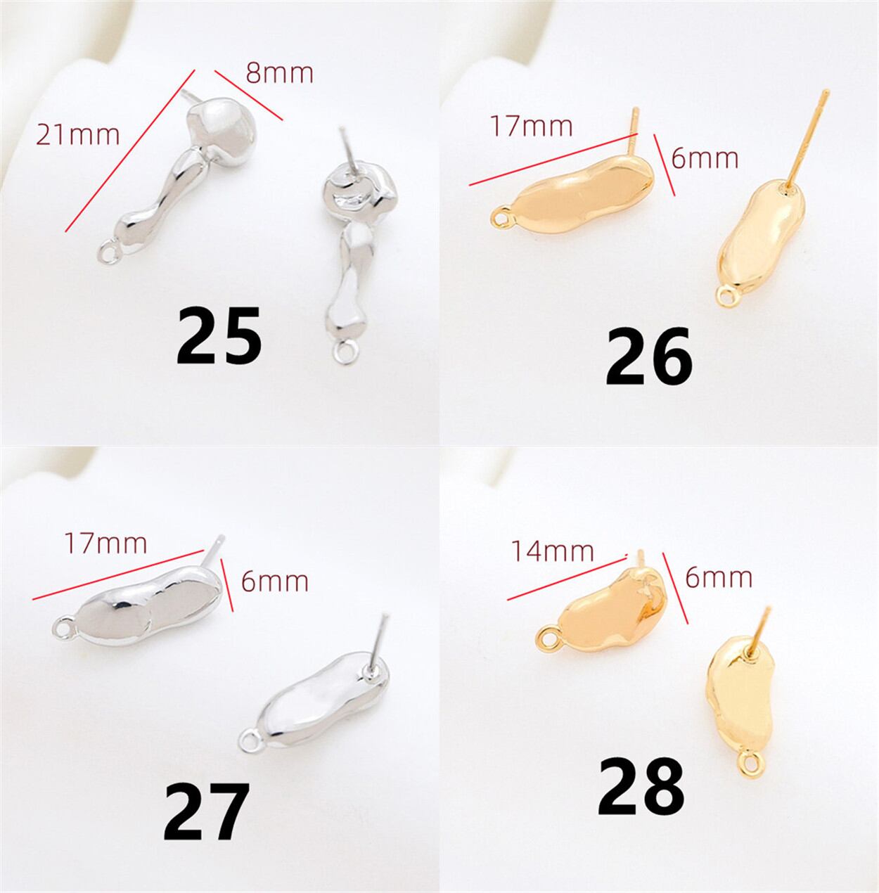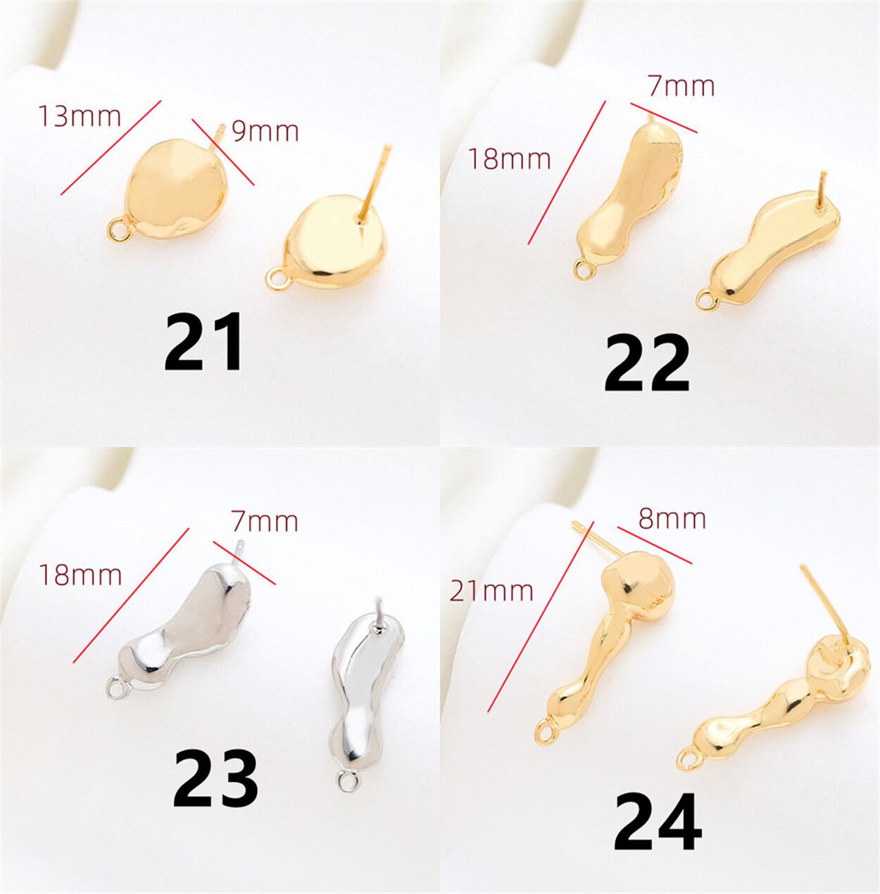 ◎【送料無料】ポストピアス金具 ハンドメイド 変形 丸カン付き アクセサリーパーツ メタル ピアスパーツ DIY バロック