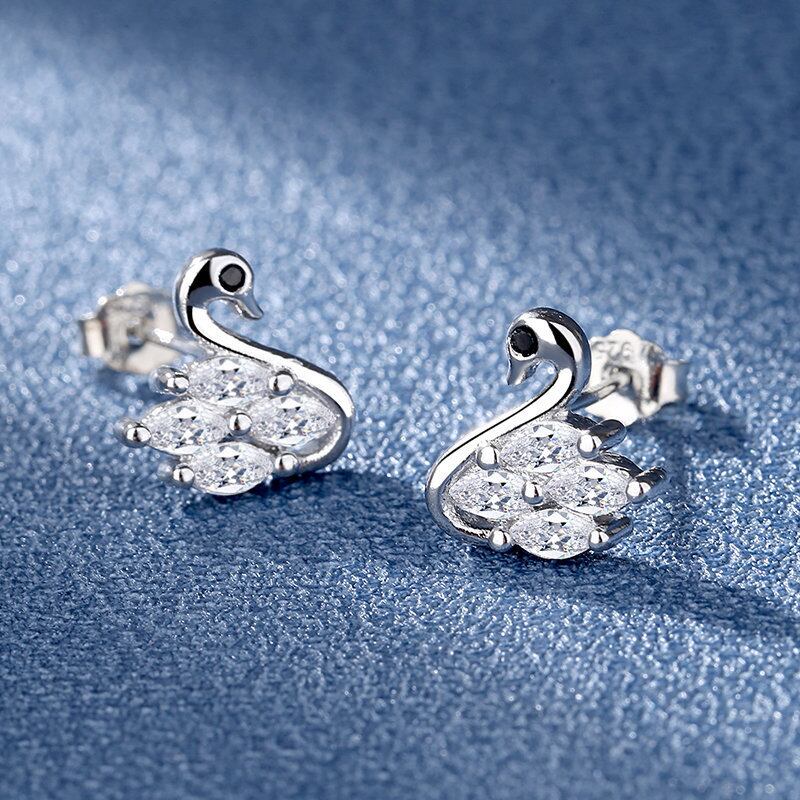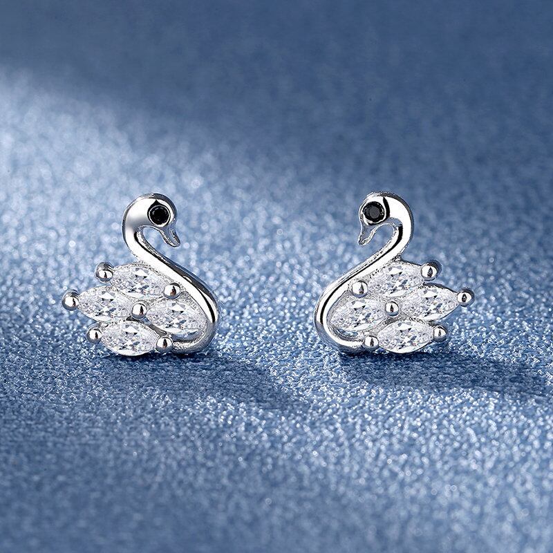 ◎【送料無料】レディース ピアス アクセサリーパーツ 白鳥 ハンドメイド デコパーツ シルバー スワン 上品 ポストピアス