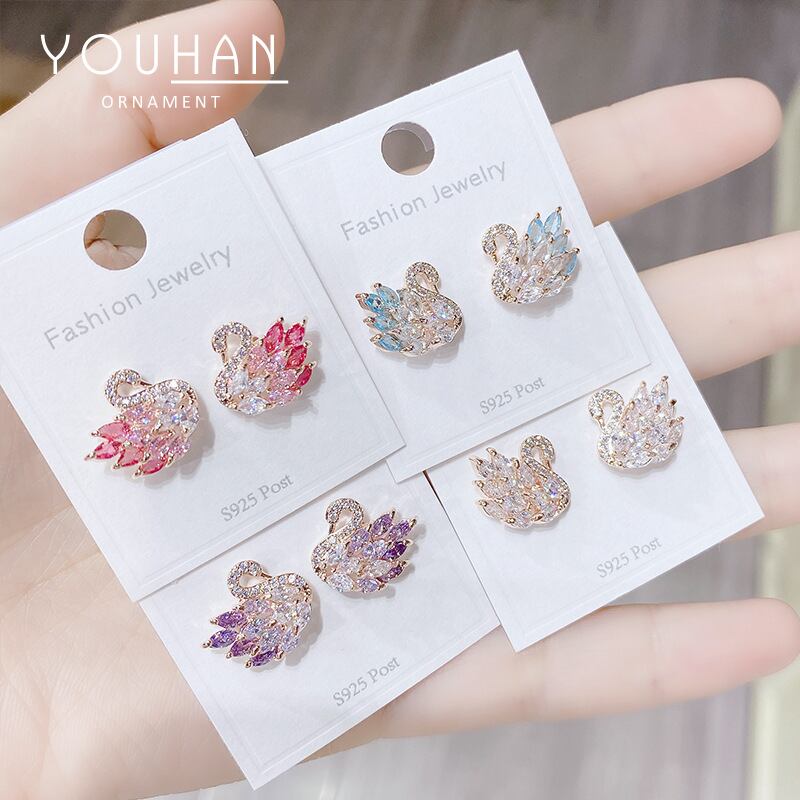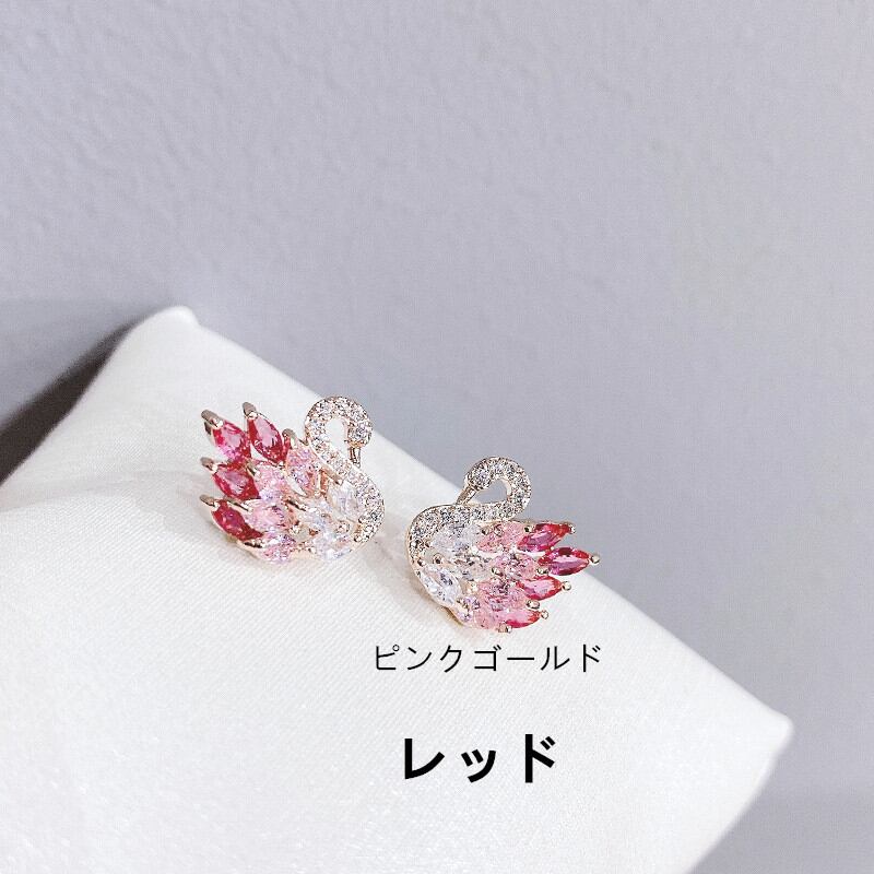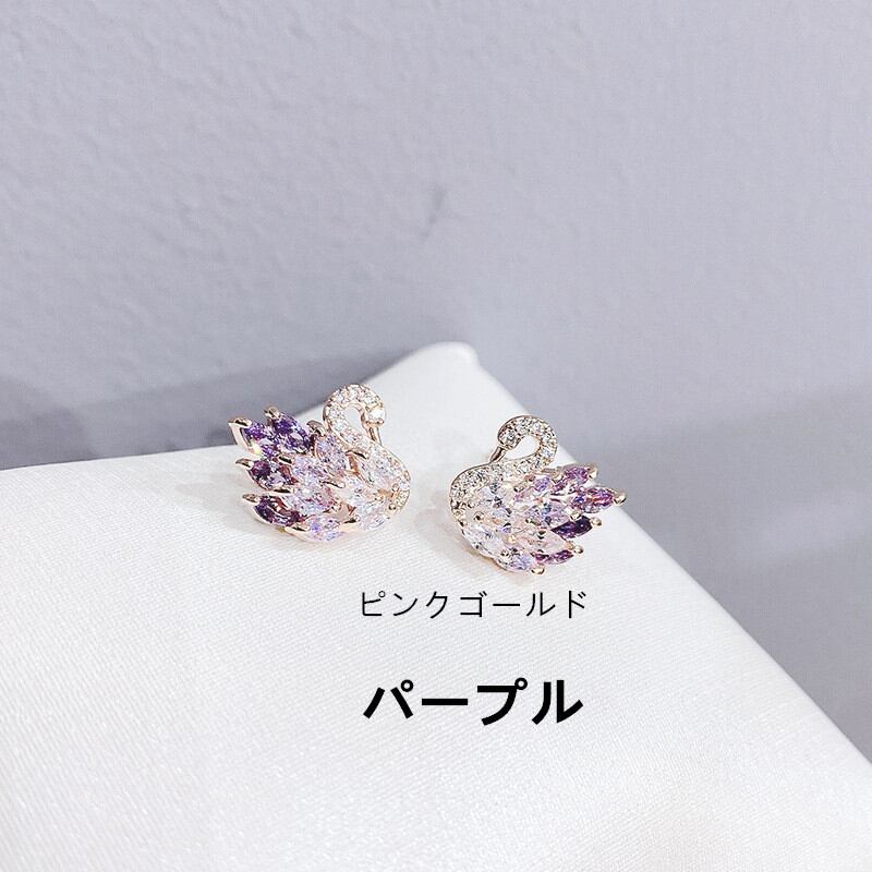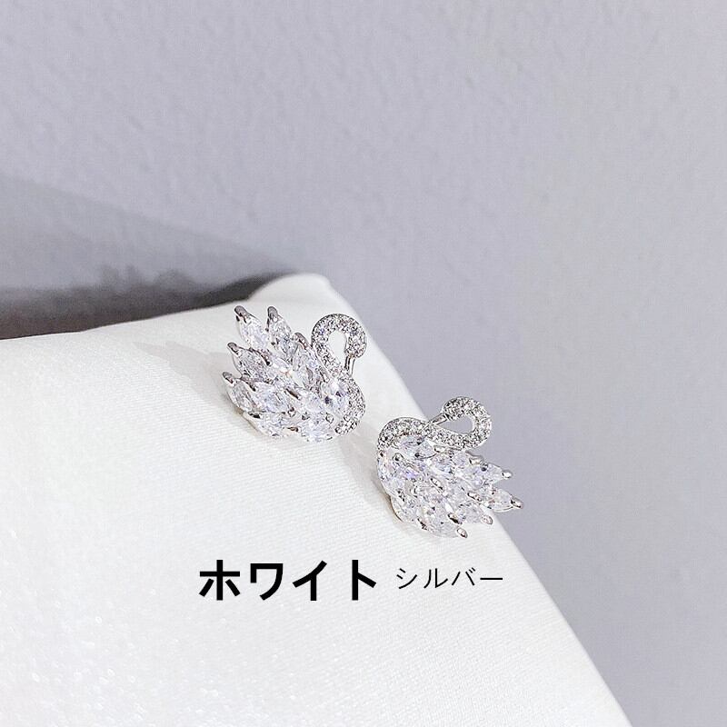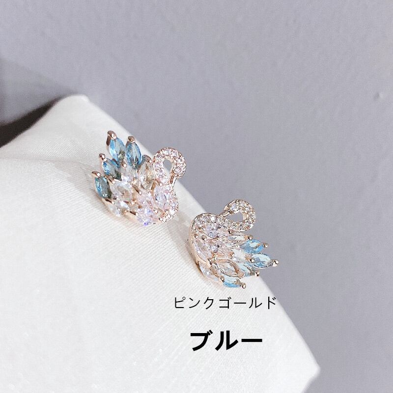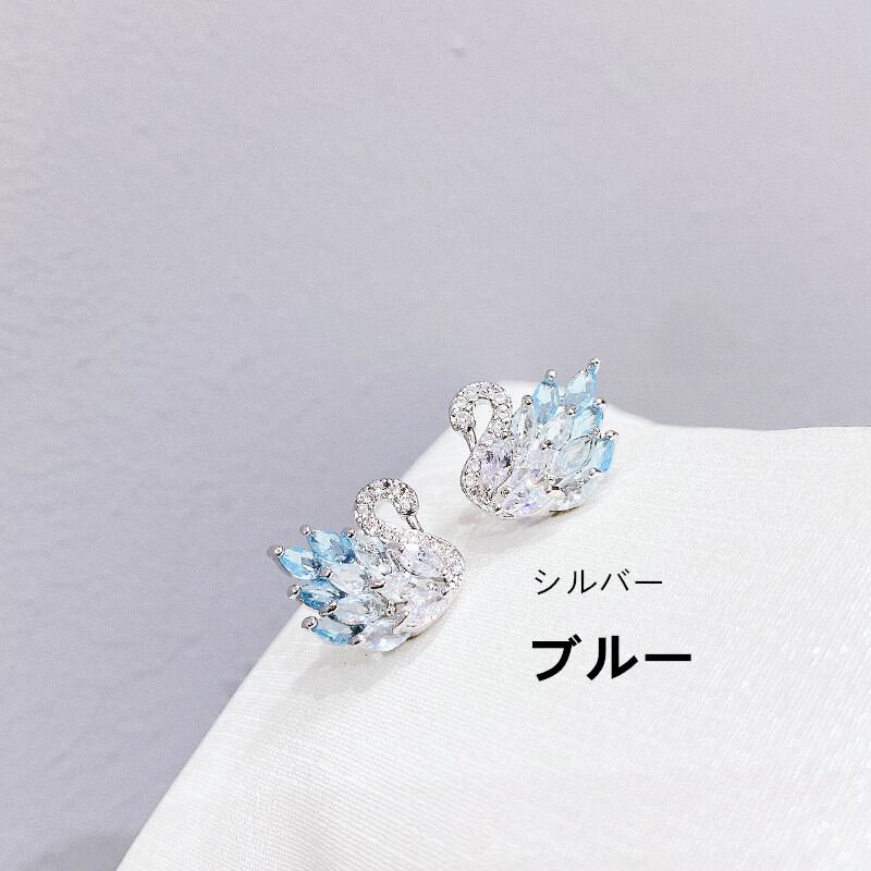 ◎【送料無料】スワン ピアス アクセサリー 白鳥 ストーン クリスタル レディース キャッチピアス グラデーション
