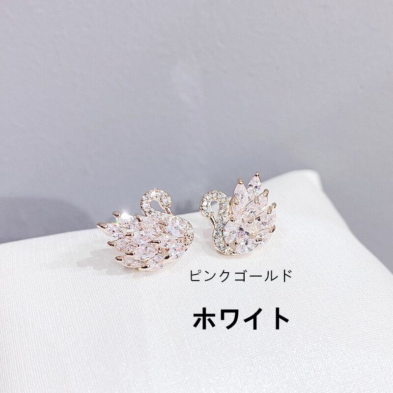 白鳥にキュービックジルコニアを並べたキラキラの宝石のようなピアス。