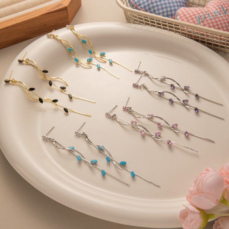 ◎【送料無料】ロング ピアス ゴールド 小枝 ストーン ゆらゆら 揺れる 大ぶり フリンジ 幾何 ひねり 人気 オシャレ