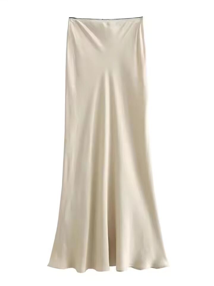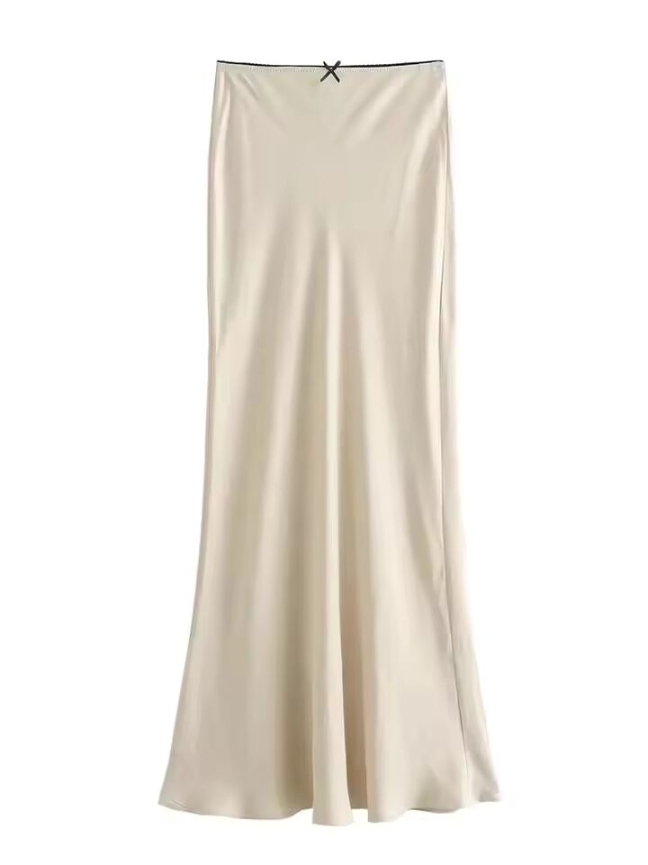 【送料無料◎】 Mooyufon 女性ファッション 2024 春の新サテンの質感の弓の装飾ヴィンテージシックな女性のハイウエスト H ラインロングスカート Mujer