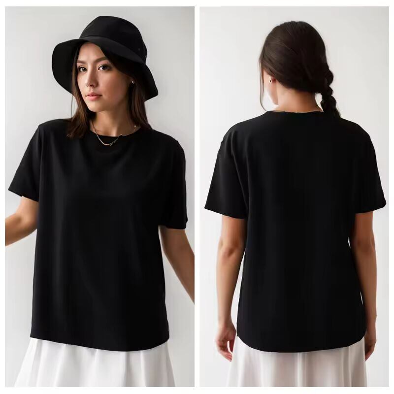【送料無料◎】 綿半袖トップス 220 グラムヘビー Tシャツ Y2k カジュアル快適な Tシャツ黒 & 白 O ネック女性服 YH2532