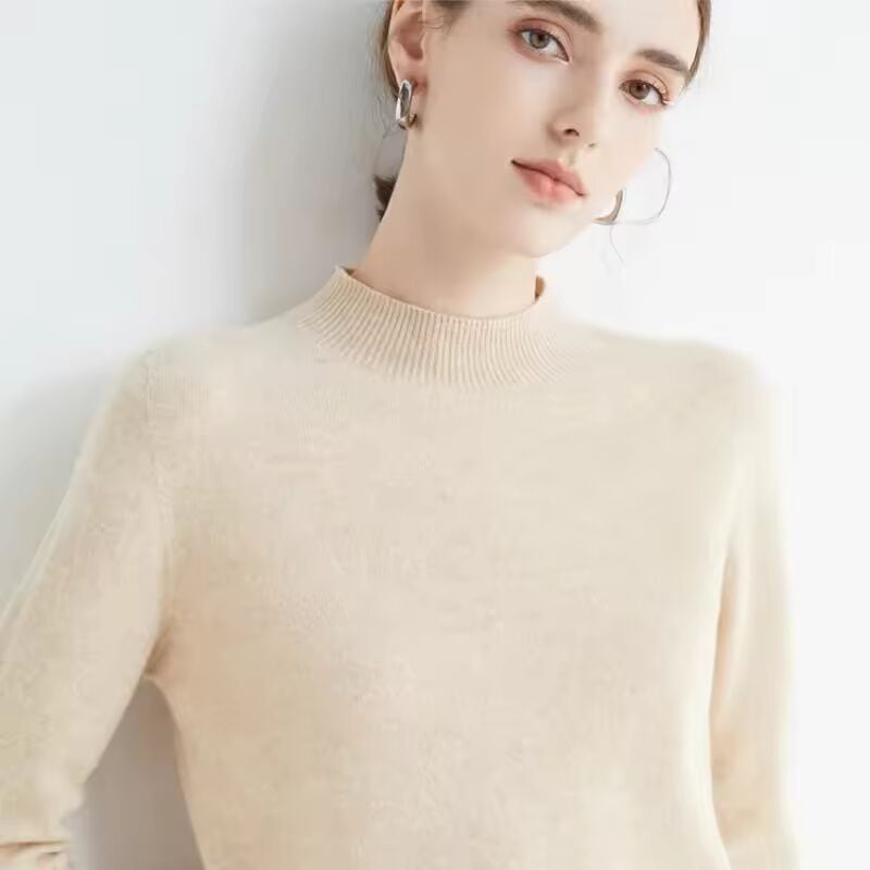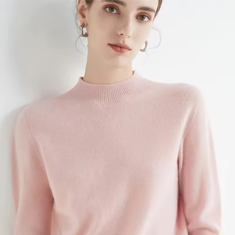 【送料無料◎】 秋冬ソリッドモックネックプルオーバーセーター女性のためのカジュアルニット女性服ベーシックソフトトップス