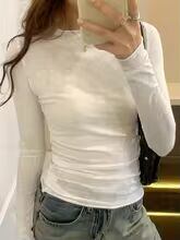 【送料無料◎】 女性用長袖ラウンドネックTシャツ,カジュアルなストリートウェア,ベース,高品質,春,秋