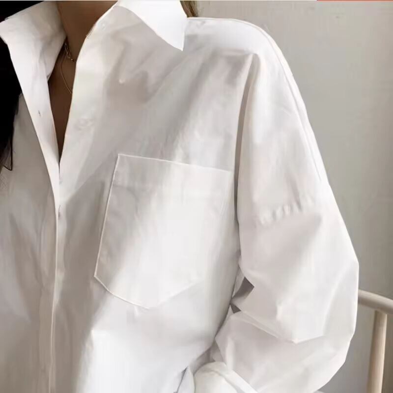 【送料無料◎】 オフィスレディエレガントな白カジュアルルーズブラウスファッション新綿長袖女性シャツターンダウン襟トップス