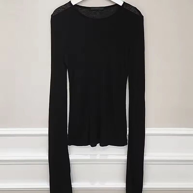 【送料無料◎】 シンタイムズ-女性の長袖のTシャツ,セクシーな韓国のスタイルのシャツ,弾力性のあるベーシックな婦人服