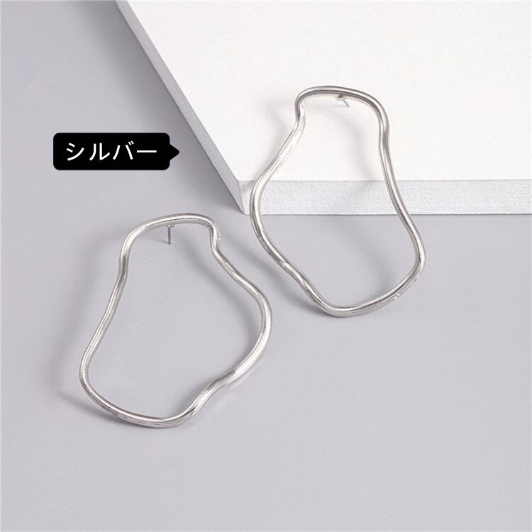 不規則幾何学デザインの大胆メタルラインシンプル耳飾り