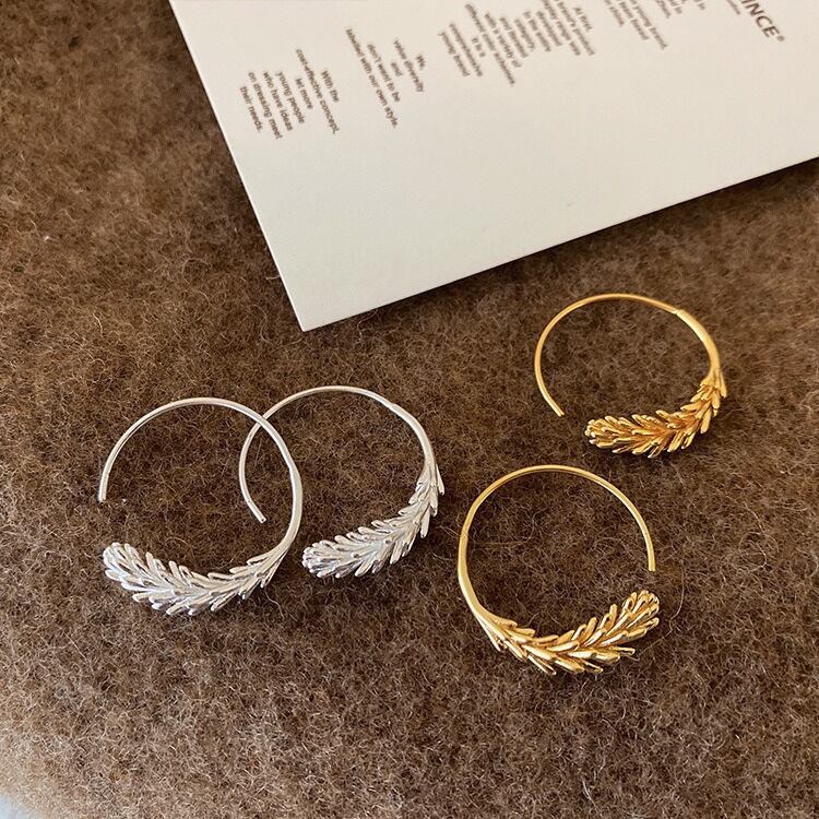 円環イヤーリング 麦穂と円葉デザイン 流行りのスタイル