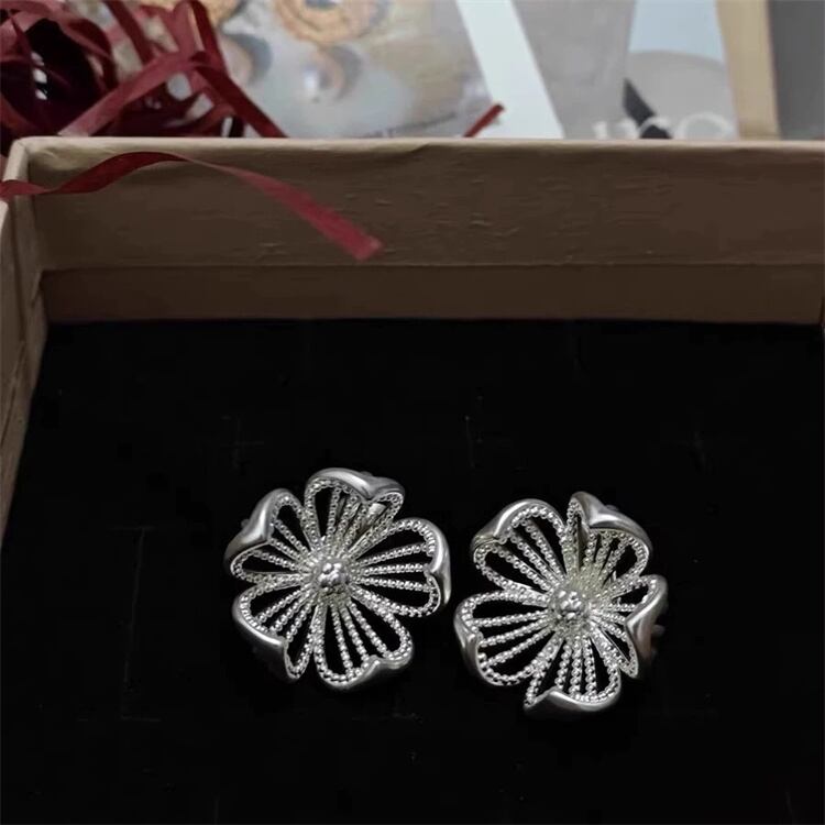レトロ風 透かし彫り花デザインピアス アンティーク感覚の装飾品