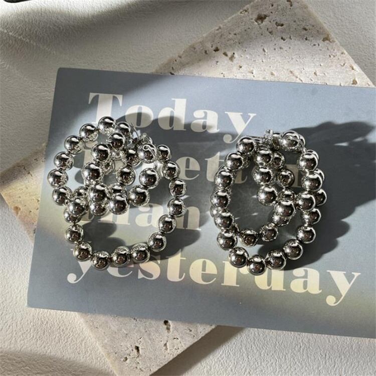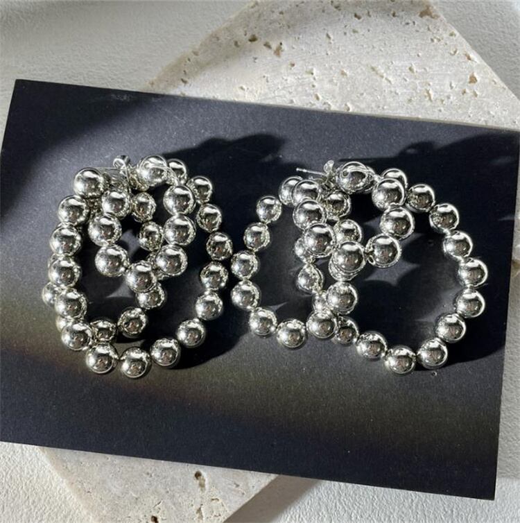 ◎【送料無料】ピアス用 銀色ビーズストランド ロングタイプ 925銀針 プレゼント
