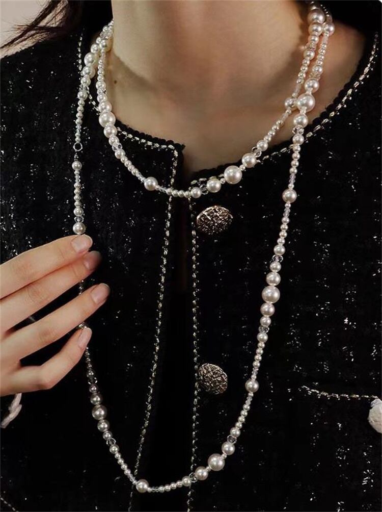 フレンチテイストの大人可愛い 人工真珠の重ね付けネックレス 長短3連デザイン