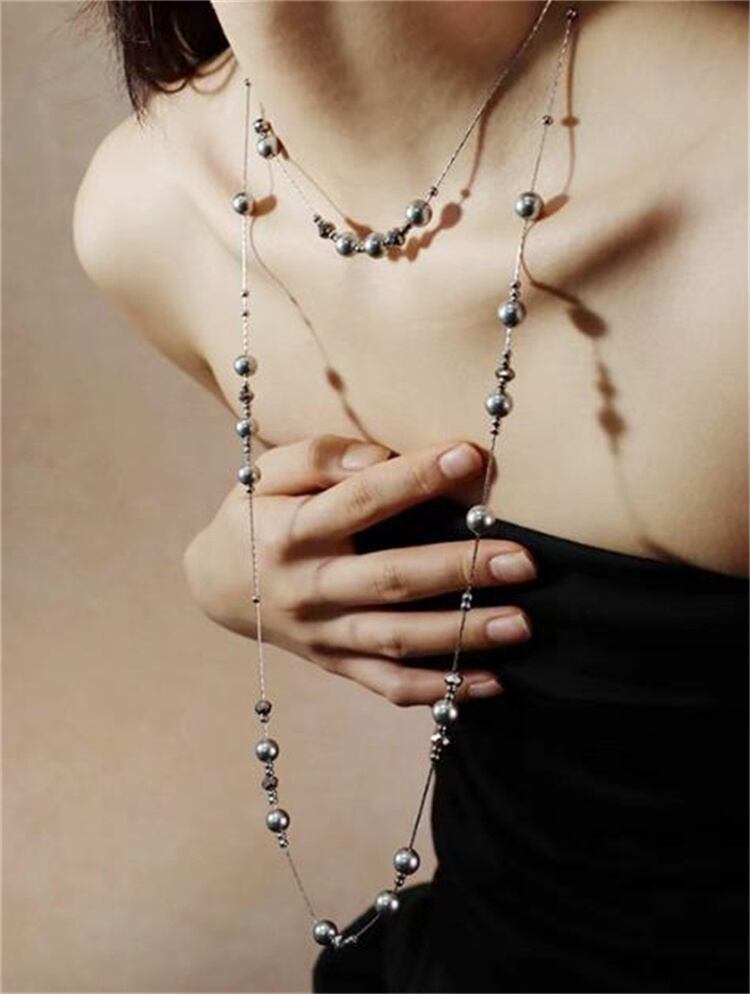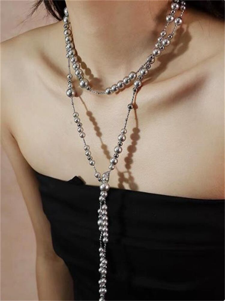 ◎【送料無料】フレンチテイストの大人可愛い 人工真珠の重ね付けネックレス 長短3連デザイン