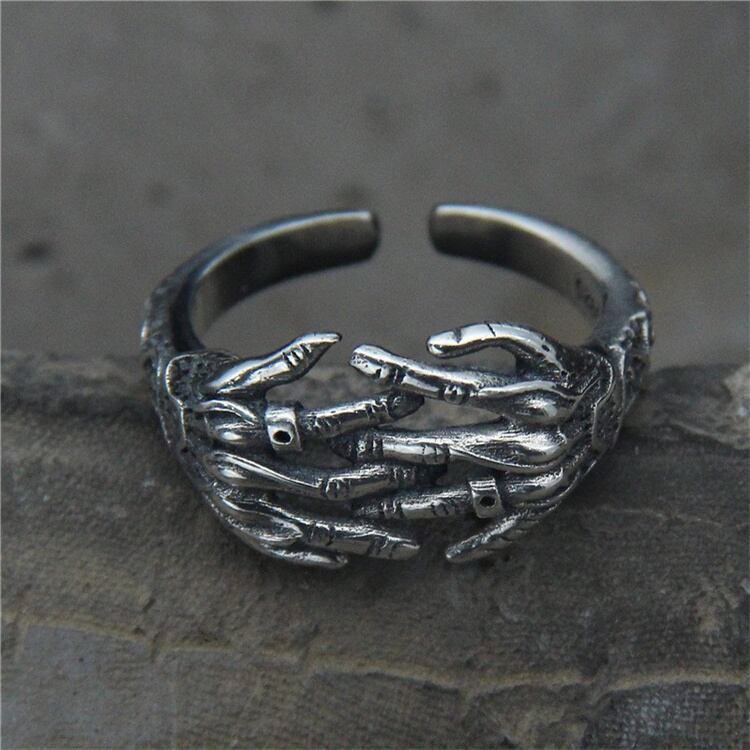 ◎【送料無料】パンクスタイル 十指ロックリング 悪魔の爪デザイン 開き調整式 個性的アクセサリー