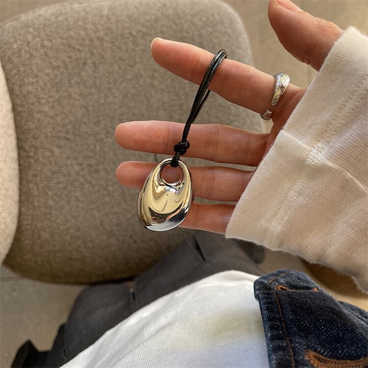 トレンド幾何学ペンダント 楕円形ツブリョン ロング調節ネックレス 日常&通勤