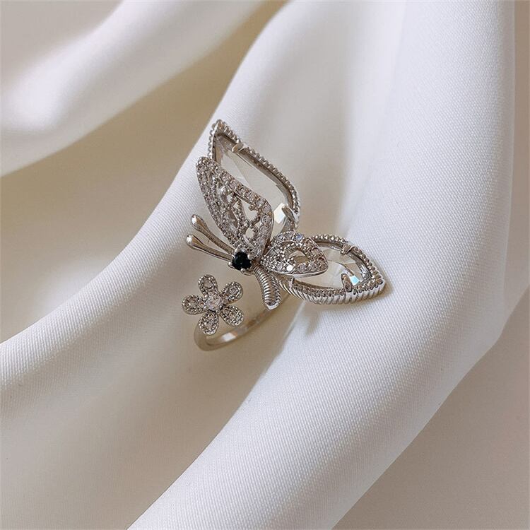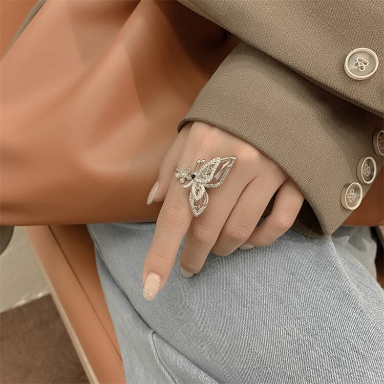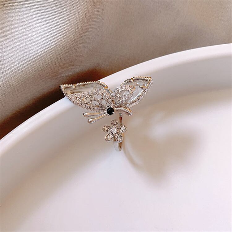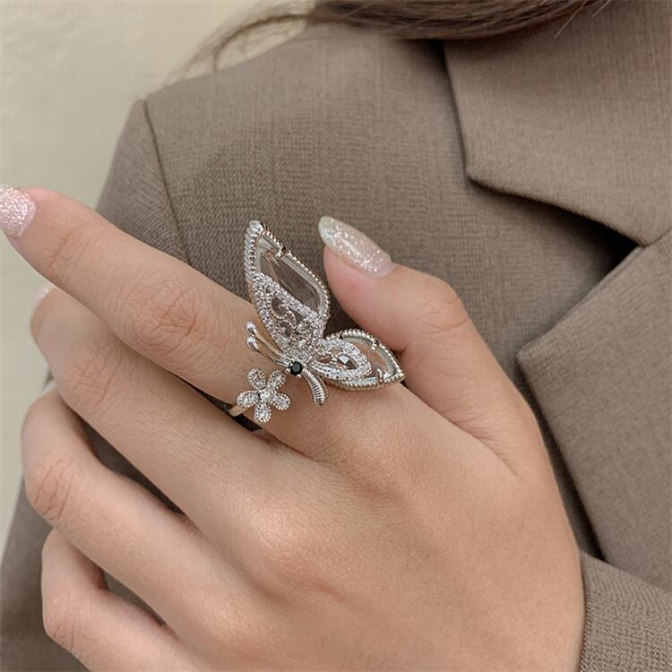 气质あふれるバタフライオープンリング;ファッション的で個性的なデザインで、手元を華やかに装飾。オープンタイプなので指の太さに柔軟に対応し、日常から特別な日まで活用できます。バタフライの可愛らしさが、あなたの魅力をさらに引き立ててくれます∽注意事項∽