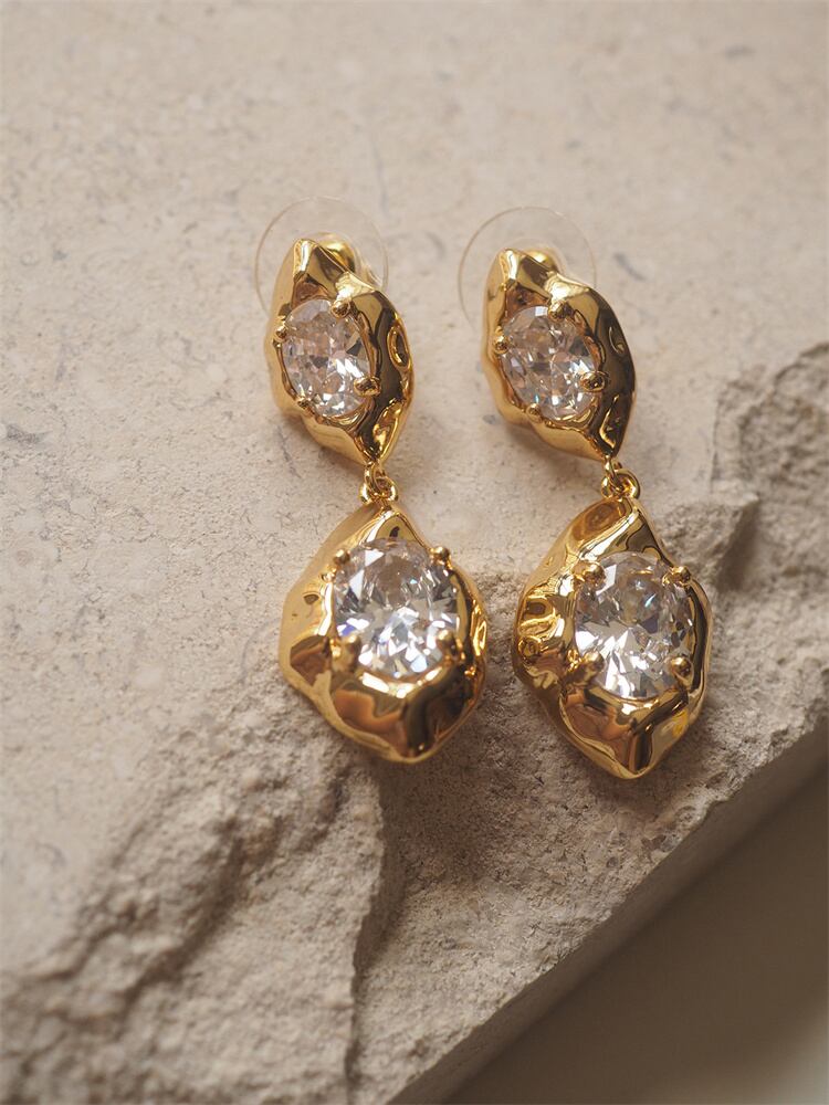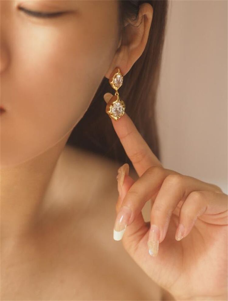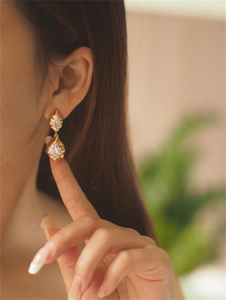 ◎【送料無料】ヨーロピアンテイスト ジルコニア フリンジ ピアス 通勤 幾何学 デザイン