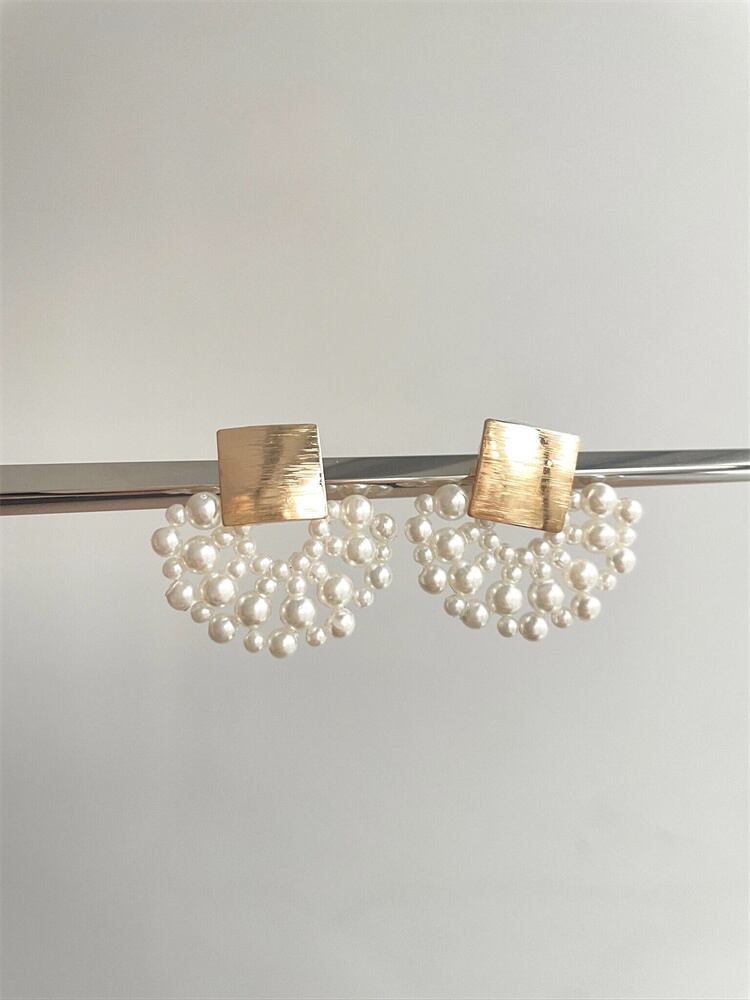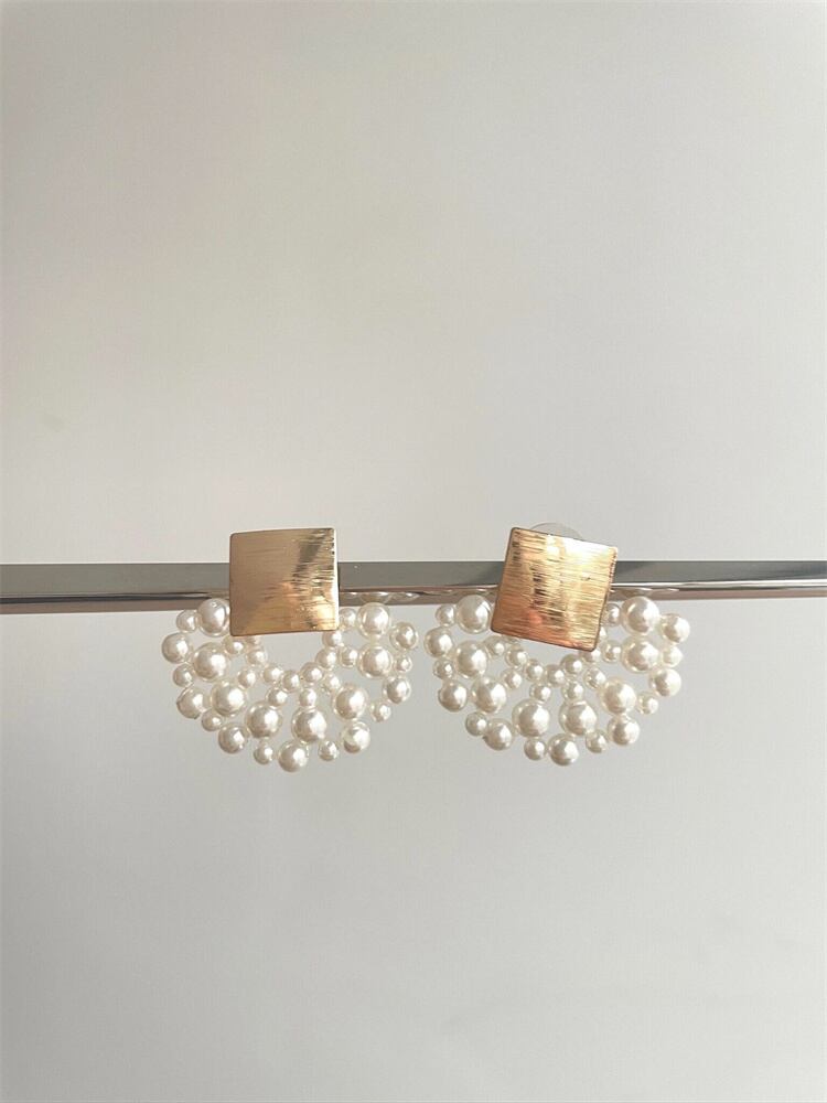 ファッション通勤向け扇形疑似真珠ピアス;ピアス穴対応で、疑似真珠の柔らかい光りが女性の魅力を引き出す。スカーフと合わせれば、職場でもおしゃれな印象を与えられる。軽さが魅力で、長時間仕事をしても耳に負担がかかりません∽注意事項∽
