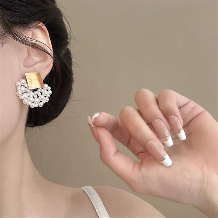 小粒パール風ファンピアス 女性らしさ増す 気品あるアクセサリー