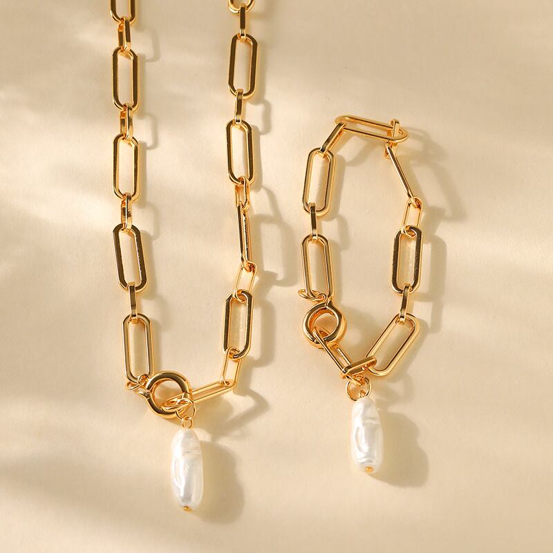 ◎【送料無料】パール ネックレスチェーン ブレスレット アクセサリー 錆びにくい 18Kコーティング レディース
