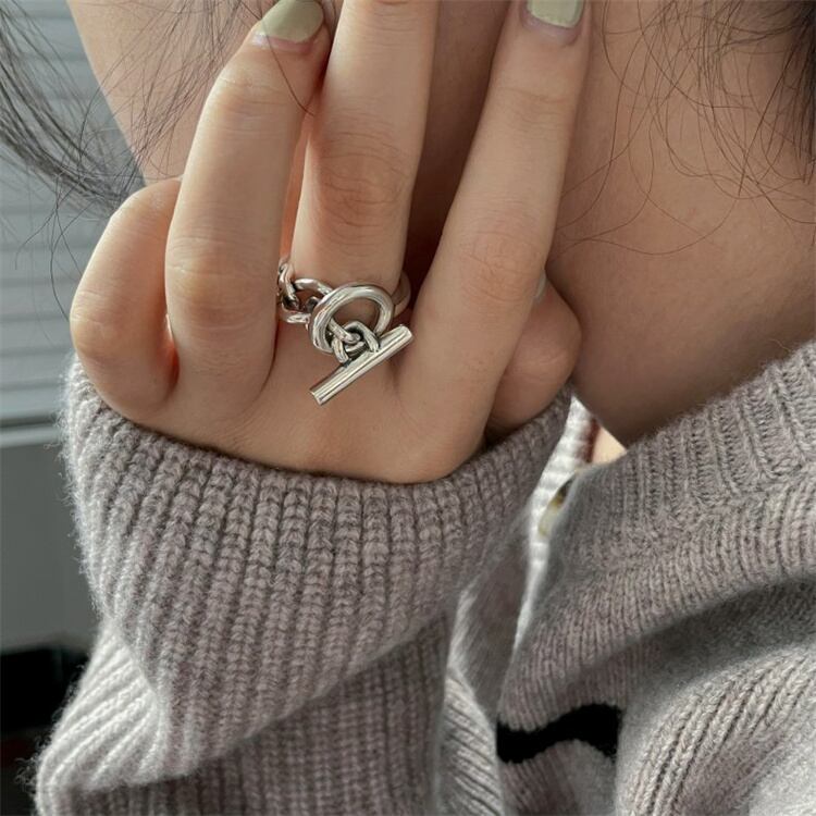 多層円環が魅力的なこの指輪、OT クリップチェーンで独特さを演出!開口式なので調整自由で、人差し指に着用するのに最適です。9.7g の重さが品質感を保ちつつ、佩戴した時の負担も少ないです。レトロと潮流を融合したデザインで、日常から特別な日まで活躍してくれます。∽注意事項∽