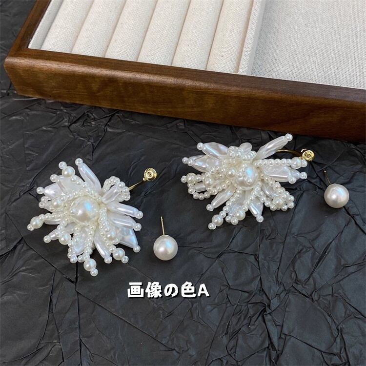◎【送料無料】ハンドメイドビーズの貝殻花 2WAYタイプ 華やかイヤジュエリー 結婚式用