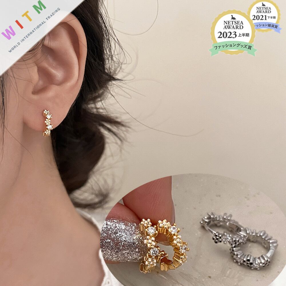 ◎【送料無料】花 ピアス 耳飾り 14Kコーティング 金属アレルギー対応 アクセサリー ラインストーン レディース 上品