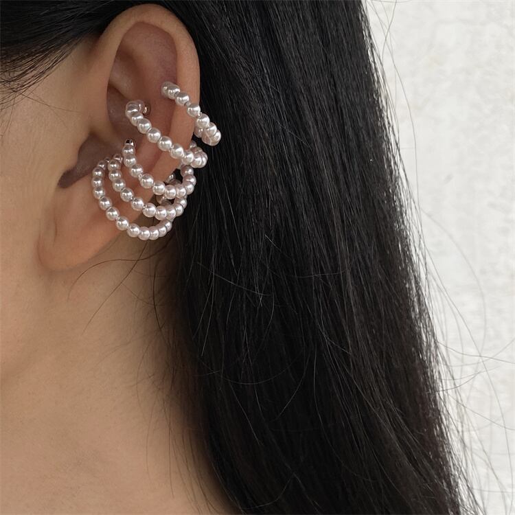 2025年新作・耳穴不要の多列パール・耳骨用クリップ式イヤーカフ
