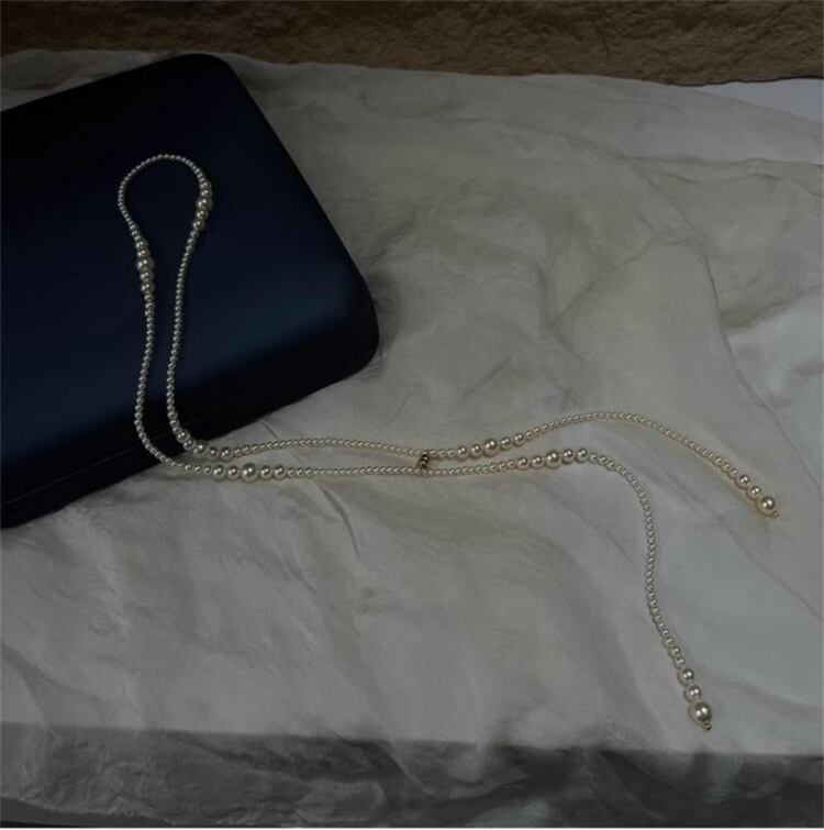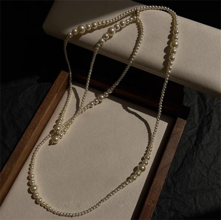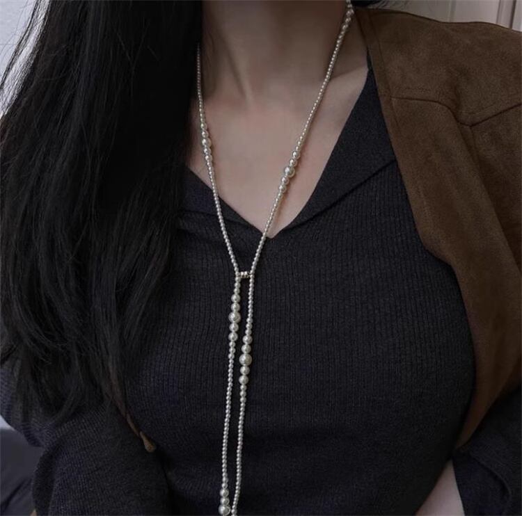 ◎【送料無料】秋冬新作 アーティフィシャルパール ロングチェーン ニットコーデネックレス