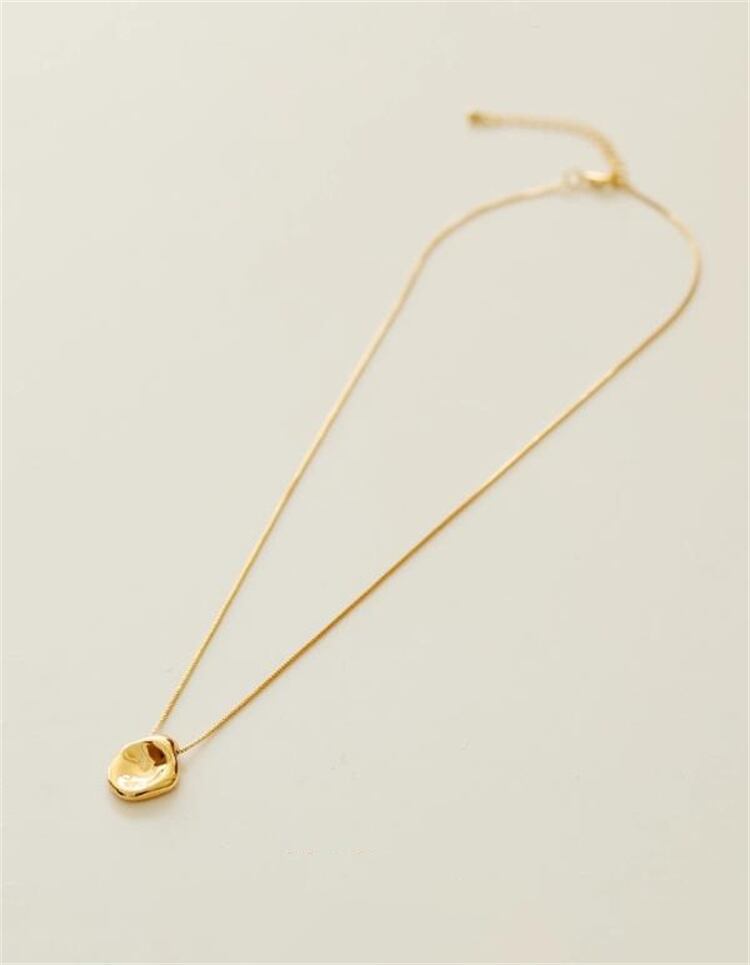チタンスチールメッキ 異形金豆ネックレス 不規則溶岩風 クラブネックレース