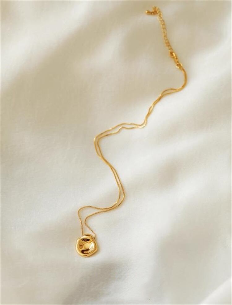 夏の薄手ニットやオープンカラーに映える鎖骨チェーン;小さな金粒が光を集めて、顔周りをパッと明るく! 汗や水に強く、海やフェスでも輝き持続。首元スッキリ見せます♡ 洗練された大人の遊び心を∽注意事項∽