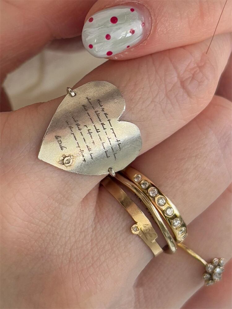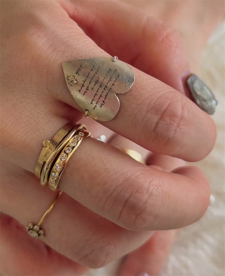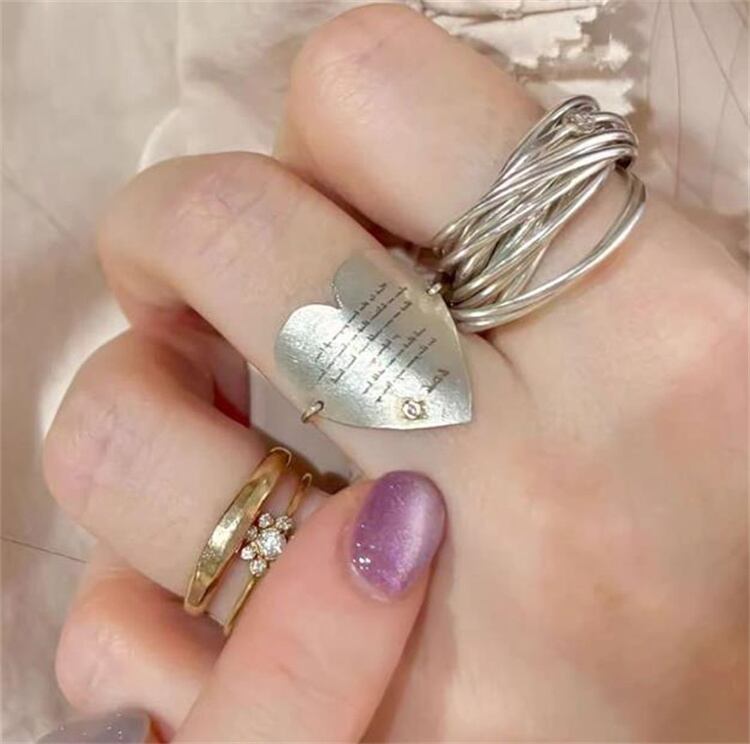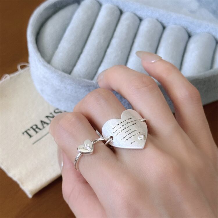太めサイズの特徴的リング 指先に目立つハート文字アクセント