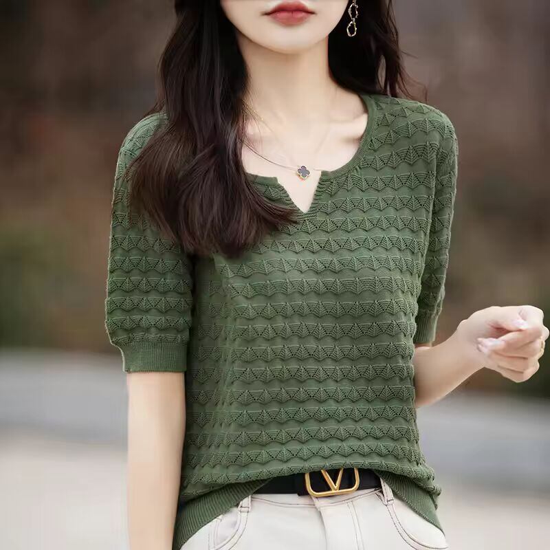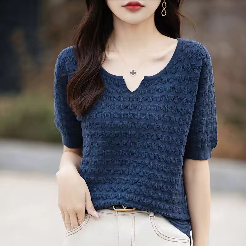 【送料無料◎】 女性用半袖Vネックセーター,無地コットンTシャツ,ルーズでカジュアル,ファッショナブルなセーター,夏,ニューコレクション100%